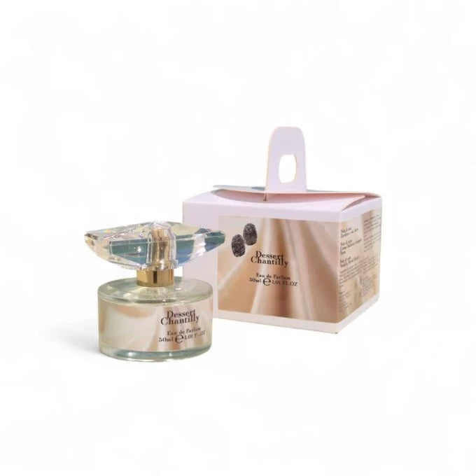 Dessert Chantilly è un profumo dolce unisex. Un’esplosione di dolcezza che avvolge i sensi come una carezza cremosa e golosa, trasformando ogni istante in un momento di puro piacere. L’apertura richiama la magia della pasticceria, con zucchero a velo e burro fuso che evocano la fragranza di un dessert appena sfornato. Nel cuore, un’armonia irresistibile di crema pasticcera, caramello morbido e panna montata dona rotondità e calore, fondendo eleganza e gourmandise in un equilibrio perfetto. Dessert Chantilly si adagia infine su un fondo vellutato di vaniglia e muschi bianchi, che lasciano una scia delicata e rassicurante. Dessert Chantilly è la celebrazione della golosità raffinata, un invito a lasciarsi trasportare dal ricordo dolce e indimenticabile di un piacere appena gustato.